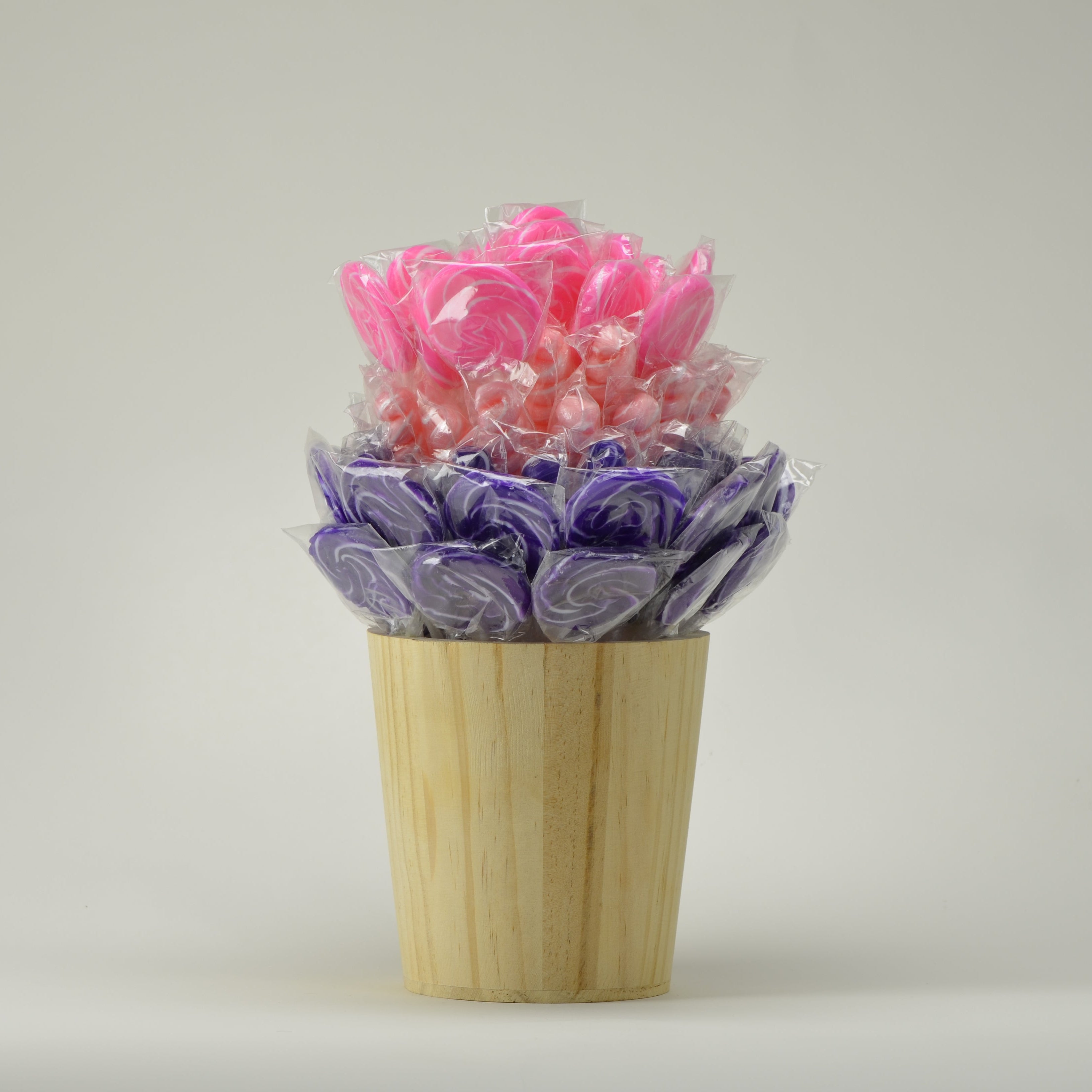 Different lighter colors going in to create a lollipop which are blue, and different sorts of pinks to make a good decor