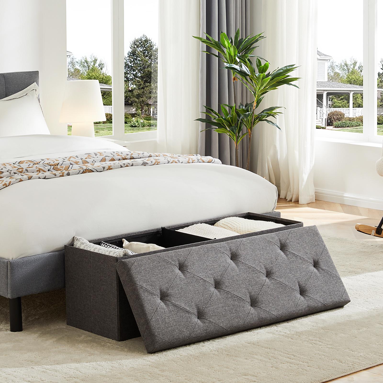 Storage Ottoman with Thicker Foam Padded Seat, Folding Foot Rest for Living Room End of Bed Bench